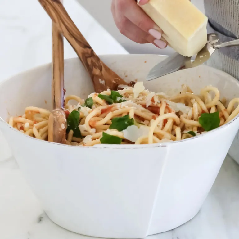 Perfect for serving and/or baking, the Lastra White Large Stacking Serving Bowl is simple, sophisticated, and chic. Handcrafted of Italian Stoneware in Tuscany, the Lastra collection folds in perfectly to any eating or serving assortment.