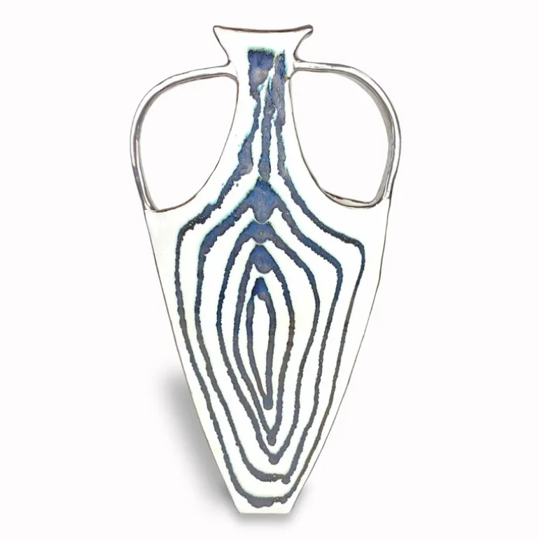 All of these art vases are handmade by the artist. One of a kind exceptional pieces 17″ finished with platinum on the handle, rim and sides. Other pieces are available in this collection to create a stunning vignette