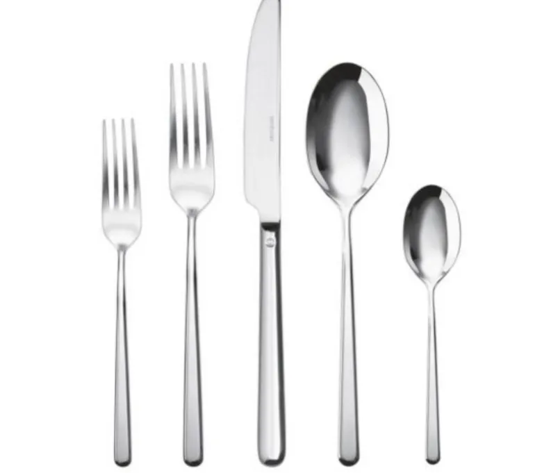 This classy Sambonet flatware is called Linear. It is produced using the finest stainless steel creating a style that is best described as modern and design oriented. The most prominent color of this item is polished steel colored. The 5 pcs place setting (solid handle knife) is sold as a set of 5. Please read the product description for further information regarding the contents of the set.