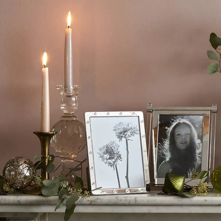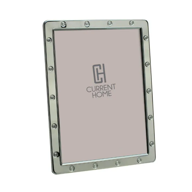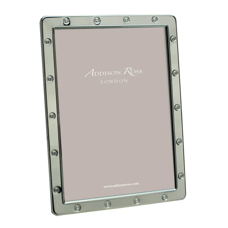 A beautiful frame with a screw detail, curved corners and a beautiful dove grey velvet backstand. Able to stand landscape or portrait and beautifully gift boxed.