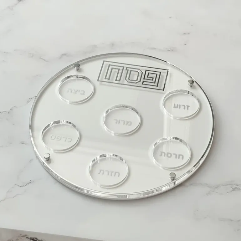 Bring a touch of artistry to your table with this sleek and contemporary Seder plate made of lucite and mirror. Elevate your Passover celebration with this sophisticated and luxurious addition to your table setting.
