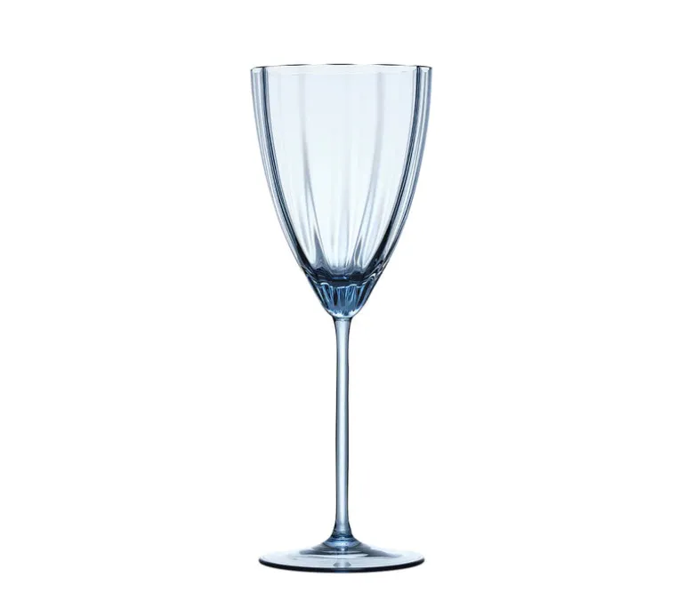 The hand-crafted, mouth-blown Luna Wine Glass brings a modern elegance to any table. The glass features optic details on the surface of the bowl that catch and reflect light at different angles. These unique glasses are made by hand using colored glass in the Czech Republic.