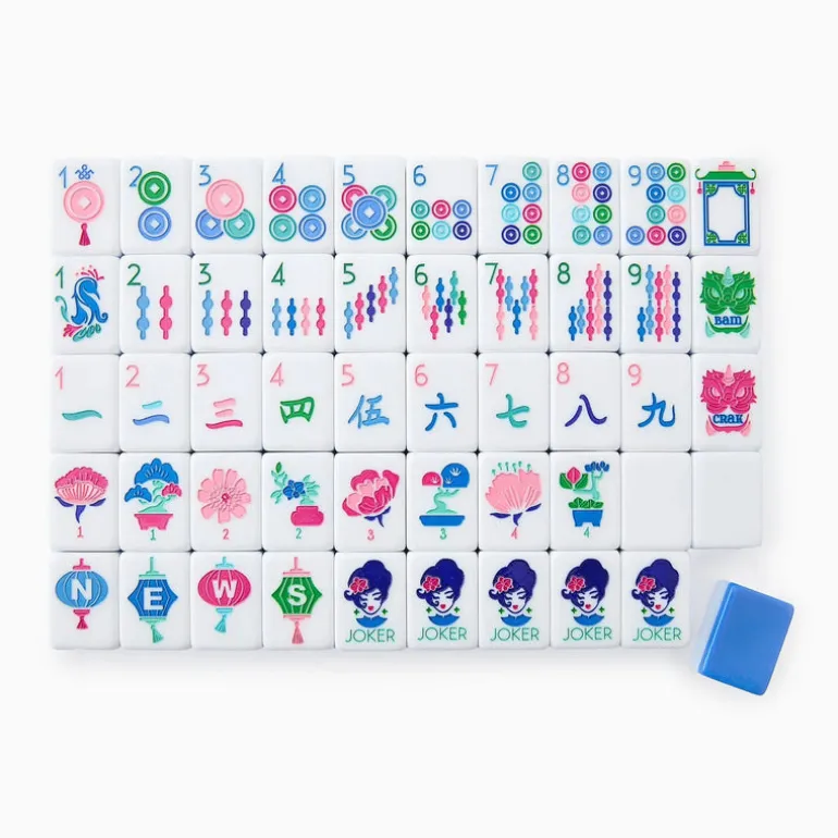 Set includes Tiles, Dice/Coin Bag and 4 Instructional Cards (If playing American Mahjong, will need to purchase NMJL Playing Card separately)
