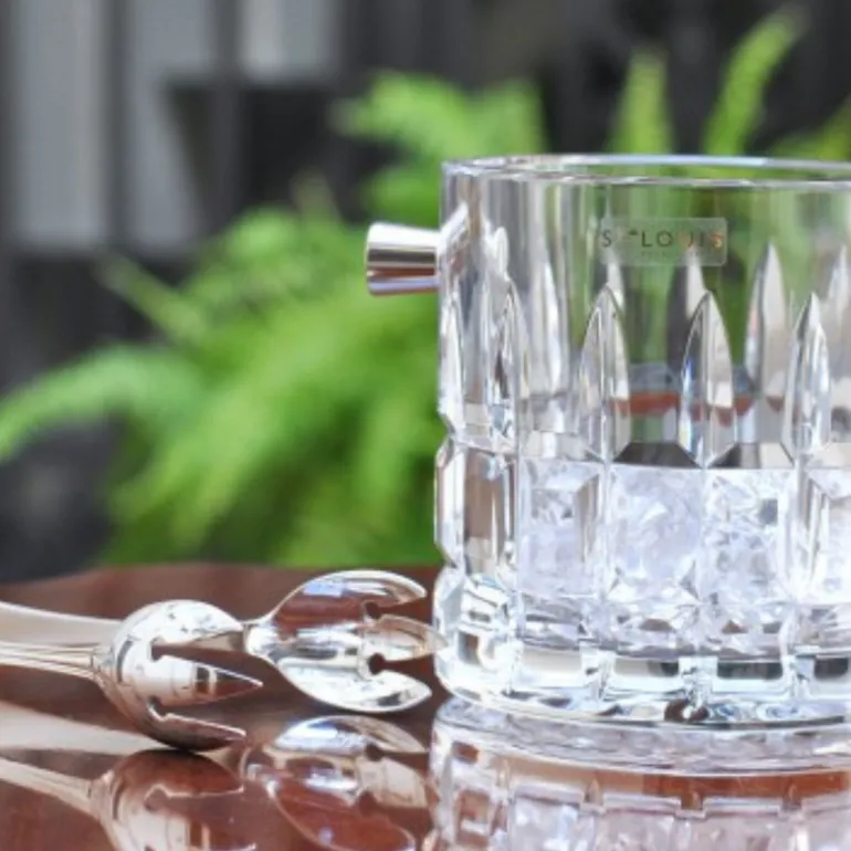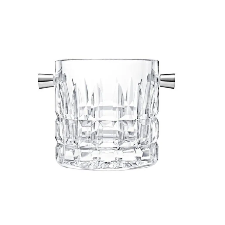The ideal bar accessory to accompany an aperitif or for making cocktails in a glass or shaker. The silvered metal handles reproduce the shape of the stopper on the square decanter and the jigger, and make it easy to carry. It can be used to hold ice cubes or crushed ice according to need. With Manhattan, the spirit of mixology can be experienced at home.