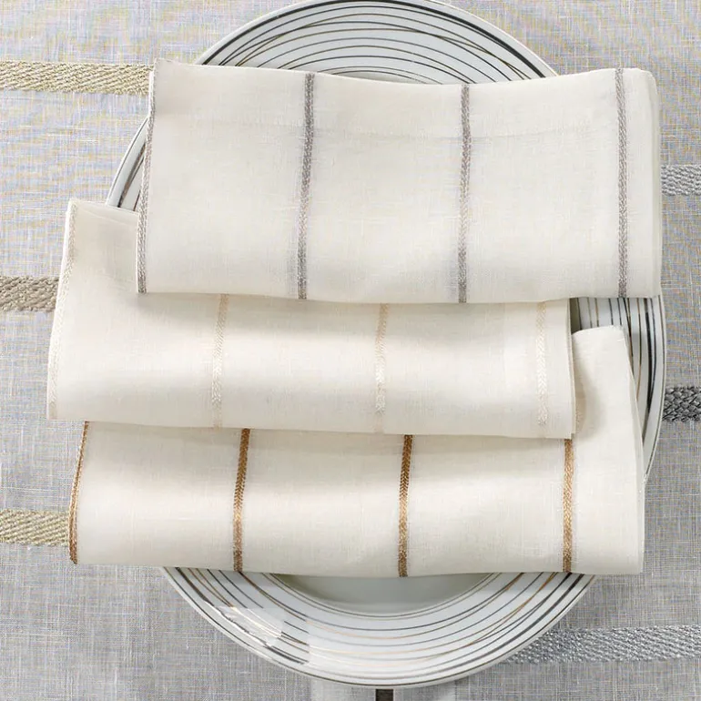 This delicately refined napkin collection is perfect for that person who wants just a touch of shine. The metallic thread woven through these lusciously soft napkins is just the right touch.