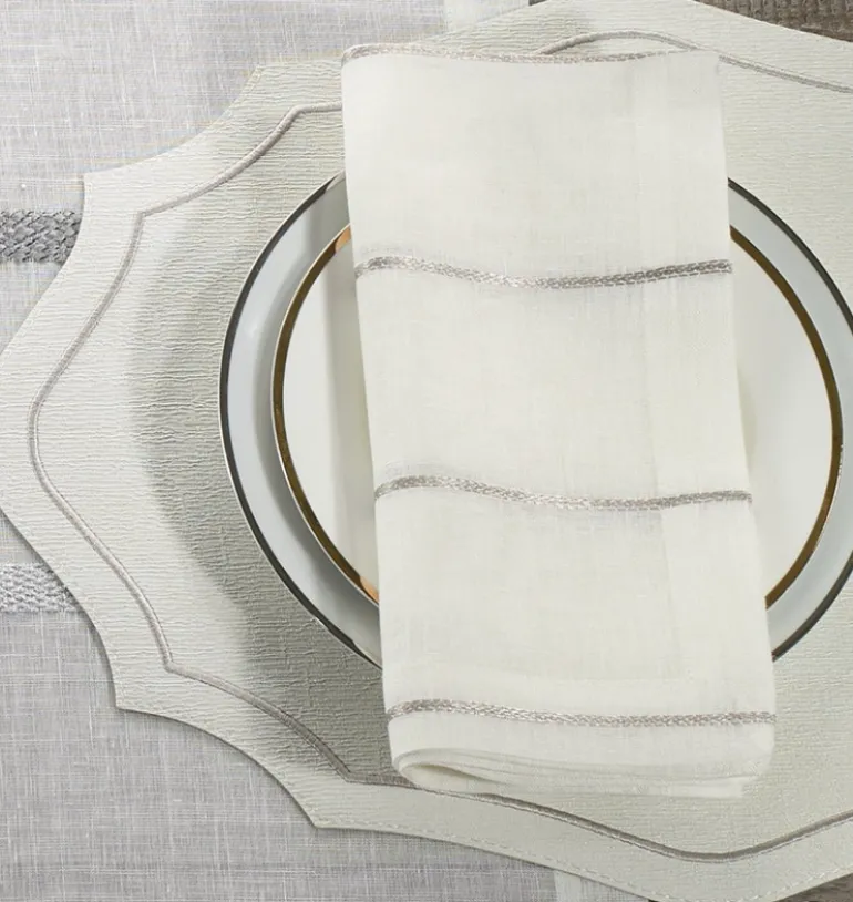 This delicately refined napkin collection is perfect for that person who wants just a touch of shine. The metallic thread woven through these lusciously soft napkins is just the right touch.
