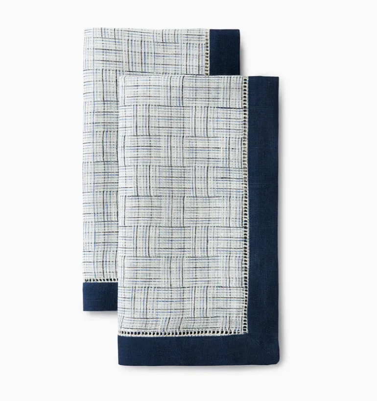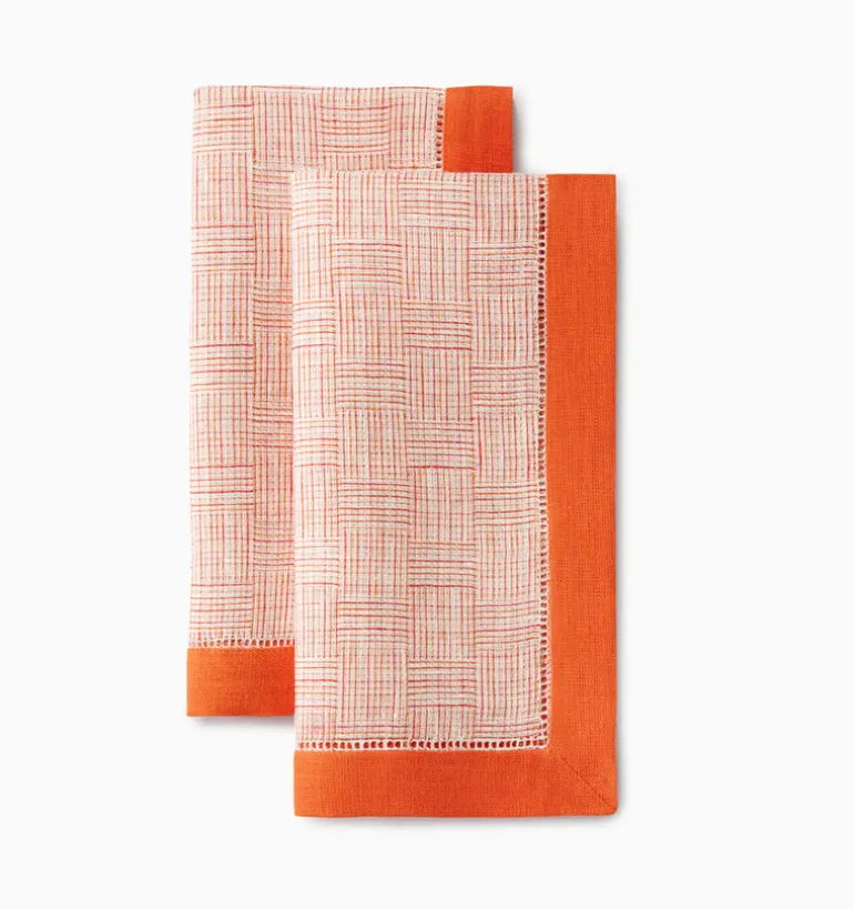 The joyous spirit of sunlit picnics enjoyed amongst the bounty of blooming florals inspire the classic beauty of our Mikelina table collection. Crafted from 100% linen, the collection brings together bright threads of fern, navy, and tangerine in a yarn-dyed jacquard weave to create a pattern of small plaid squares framed by a contrast border and hemstitch finish.