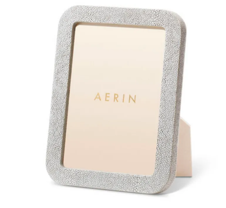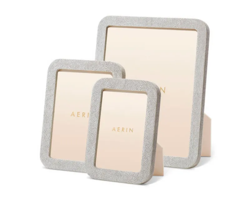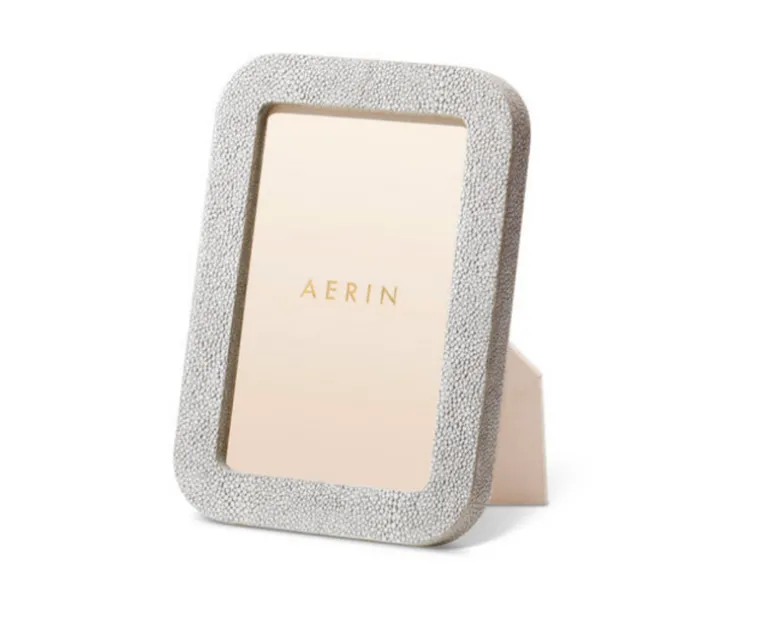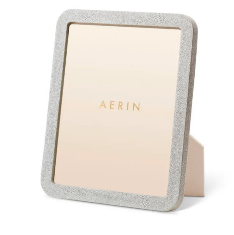 This contemporary frame is finished with textured, embossed shagreen and is styled with curved lines. The minimalist design, without any additional enhancement, provides a fresh, clean look that is perfect for casual settings.