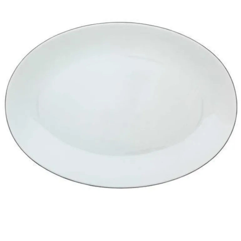 This elegant serving piece is part of the Monceau Dinnerware collection from Raynaud. Crafted from pure white Limoges Porcelain the plate has an edge detail with the slightest hint of platinum.