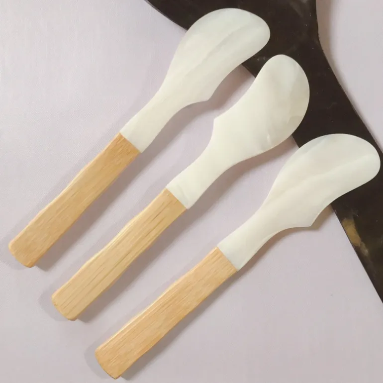 These spreaders are made from sustainable bamboo and elegantly embellished with mother of pearl, making them ideal for serving dips, spreads, and cheeses. They are environmentally beneficial due to the use of natural materials, and every gathering is made more sophisticated by the elegant design. With these four spreaders, entertaining will be a breeze.