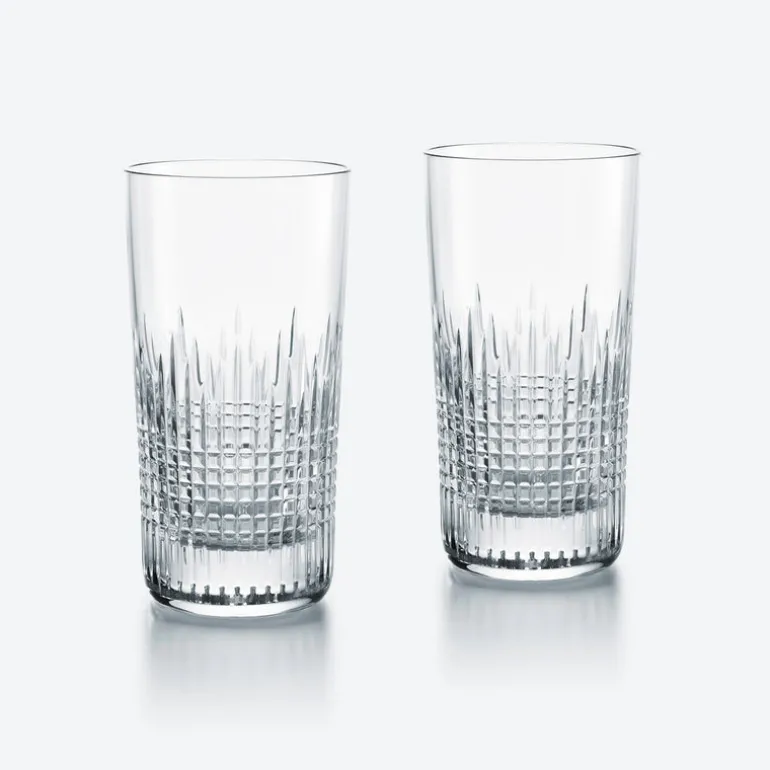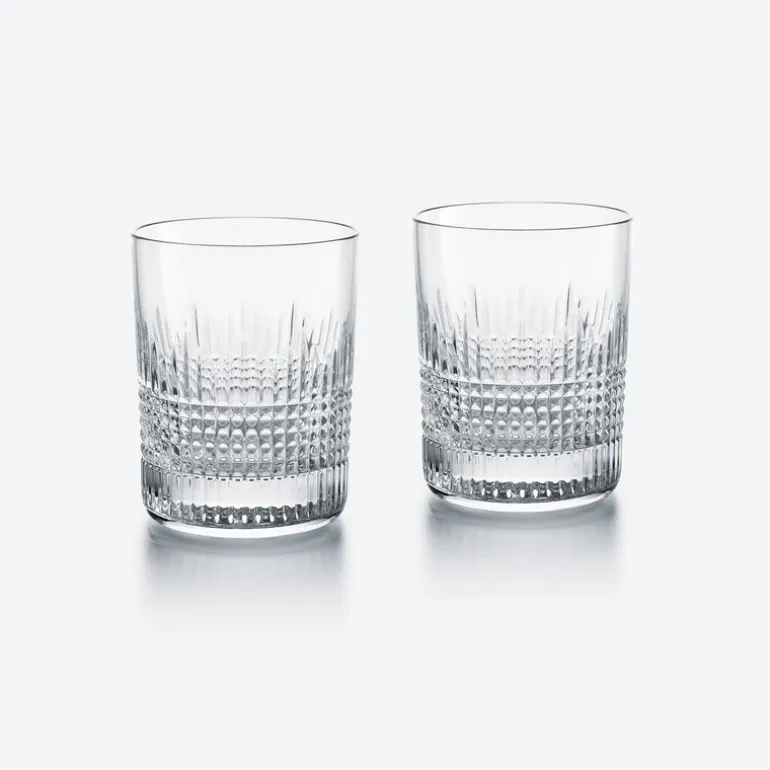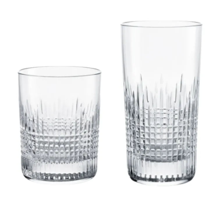 The rigorous geometry of the latticework offsets the smoothness of the upper part of the glass. The embossed clear crystal gives great depth and shimmer to the spirit within as the crystal catches the light. The textural feeling of the tumbler’s diamond-cut pattern against the fingertips underlines the craftsmanship applied to the Baccarat Clear crystal. The Nancy collection fully engages both the visual and tactile senses, and is a wonderful addition to a well-stocked bar.