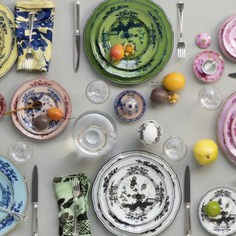 Create a magical mix with this this Italian porcelain collection filled with charm and sophistication. The Ginori Oriente collection features a chinoiserie floral motif painted in the an exquisite mix colors. Made to be mixed and matched, no two tables will look alike.