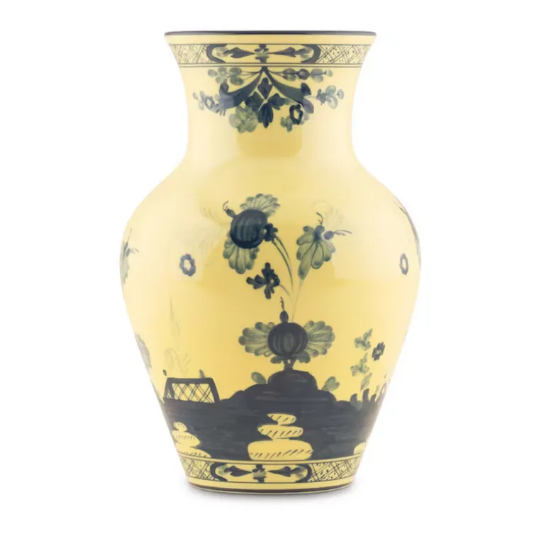 Enhance the beauty of your favorite bouquet with the Oriente Italiano Ming Vase. Crafted by Ginori, this 9″ vase adds a touch of elegance to any room. Its intricate design and high-quality Italian make elevate any floral arrangement. Perfect for those who appreciate timeless and sophisticated decor.