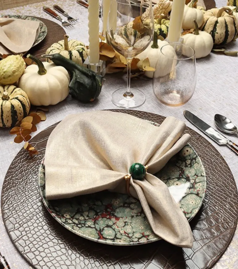 Named for one of the most recognizable constellations, the Orion Collection by Kim Seybert, features hand-sprayed gold on delicate glass creating an ombre effect. Due to the hand-crafted nature, no two pieces will match exactly.