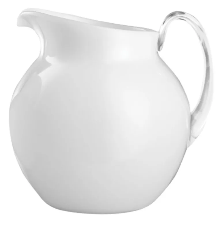 Add a colorful twist to beverages with this Pitcher. Crafted from practical acrylic that imitates the beauty of solid crystal, this simplistic pitcher has been shaped with a large, attractive curvature sure to catch the eye. Finished with a contrasting clear handle and makes a wonderful addition to any dining table.