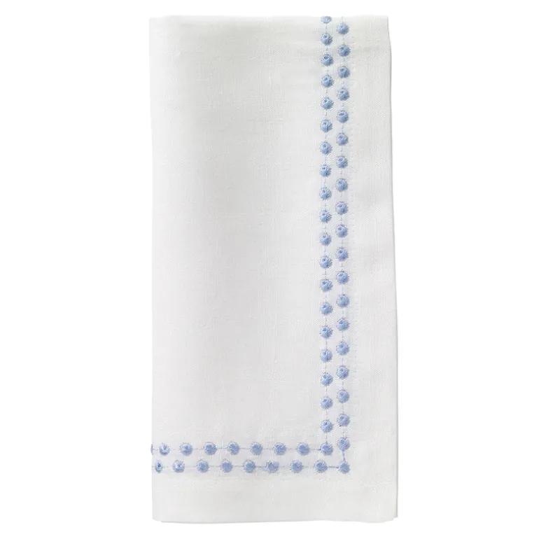 This napkin collection was made to be the perfect match for many dinnerware collections. Beautiful off-white napkins with elegant “pearl” embroidery detail.