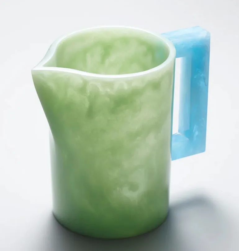 Serve with flair and add some personality and color to your next gathering with Pearl’s Pitcher by Lily Juliet. This stunning resin handmade piece is a functional work of art, perfect for serving your favorite beverage in style. The vibrant celadon and sky blue design is sure to be a conversation starter, making it the perfect centerpiece for any occasion.