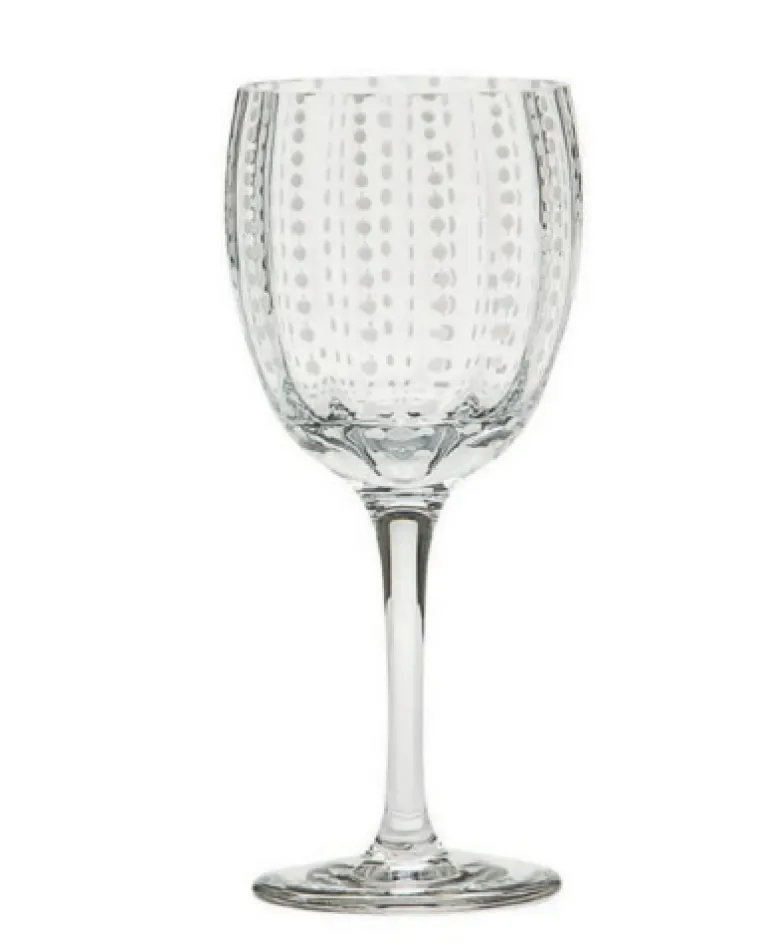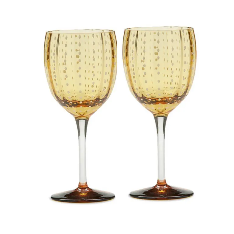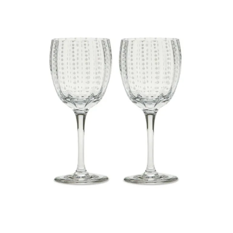 The Perle Wine Goblet Set is part of the Perle Collection by Zafferano, crafted in Italy. Its design features a charming dotted glass perfect for everyday use or to elevate your table setting. Enjoy your favourite wine in the beautiful and durable Perle Wine Goblets.