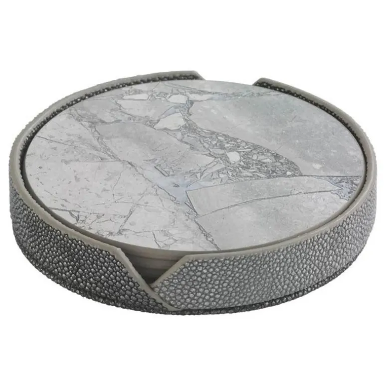 Crafted with acrylic and marble dust, the Pietra Coasters boast a matching vinyl color on the back for a classic look. These coasters bring a dash of sophistication to any occasion!