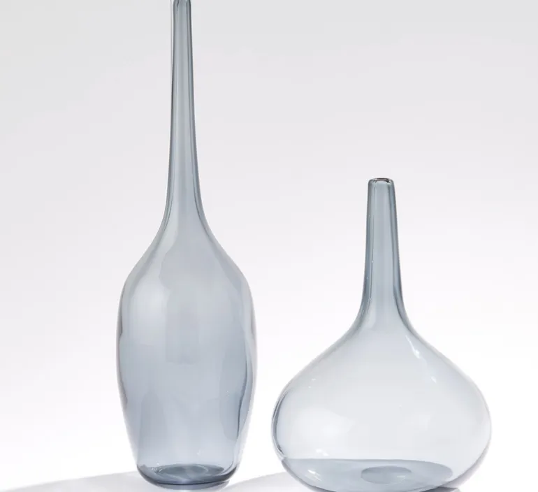 Crafted from handblown art glass, the Pinnacle Bottles boast a sleek design, perfect for infusing any space with a vibrant touch of color. Their versatility makes them ideal for effortless layering with your favorite decor pieces. Each bottle is unique due to its handmade nature.