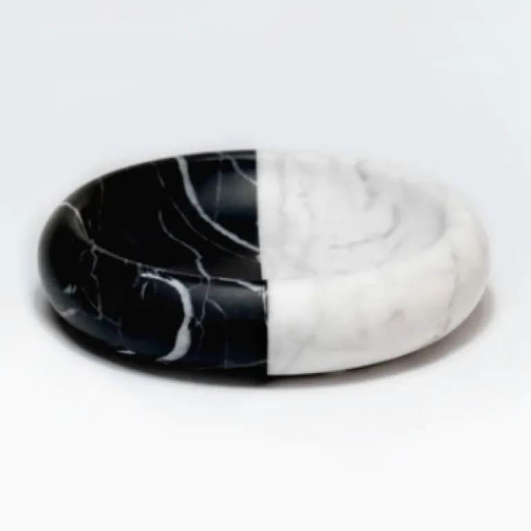 The Polar Bowl presents a symmetrical fusion of two contrasting marble pieces honed for a smooth, elegant finish. With a softness to their curved edge, these mini architectural creations are perfect for treasuring your keepsakes or enhancing any surface with their sophisticated charm.