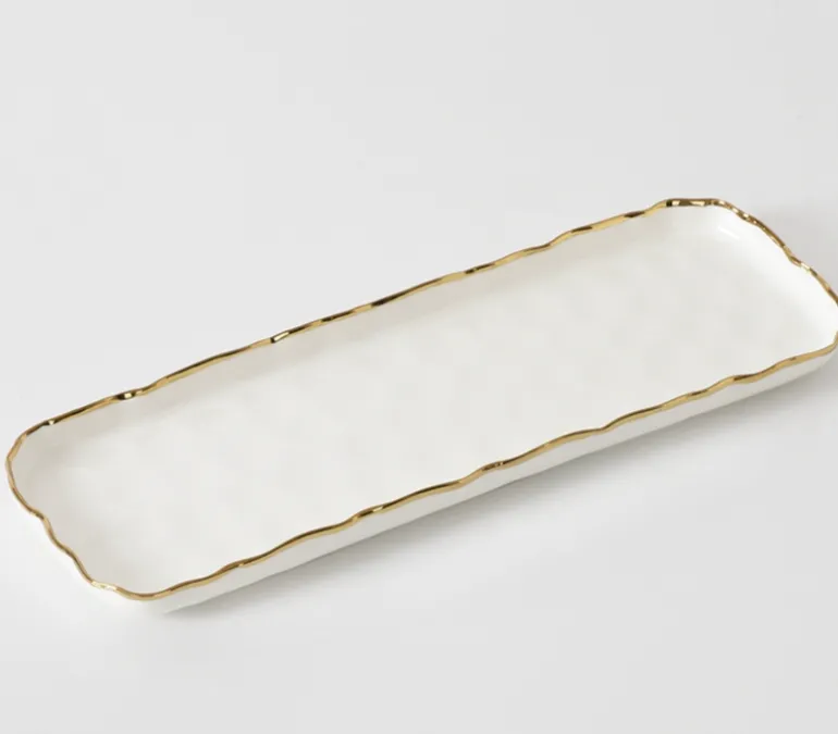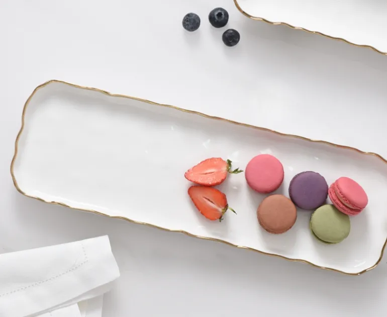 A new oven to table collection. The Portofino’s charm resides in the new organic shapes that give the premium porcelain designs a delicate and luxurious look. Perfect for everyday meals or elevated dinners. This Rectangular Tray is perfect for serving side dishes, appetizers, and desserts.