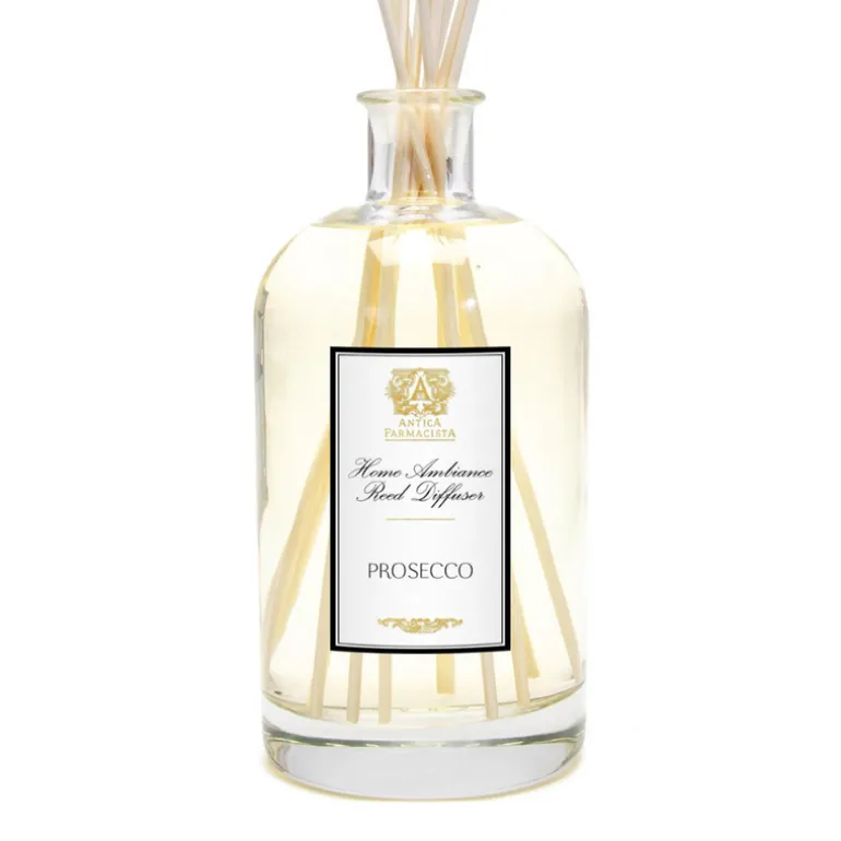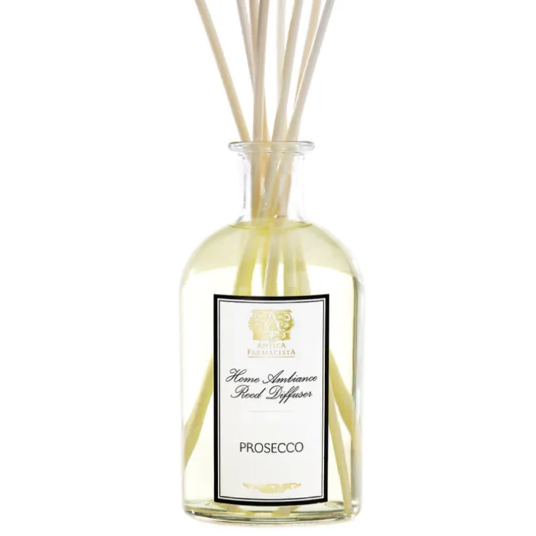 Unmistakably cheerful and undeniably inviting, the Prosecco Diffuser captures the effervescent joy of a festive occasion. Its vibrant top notes of tart satsuma citrus and floral accents of apricot, passionfruit, and sugary black currant evoke a sparkle of delight. Vanilla, creamy sandalwood, and weightless musks contribute a velvety base.