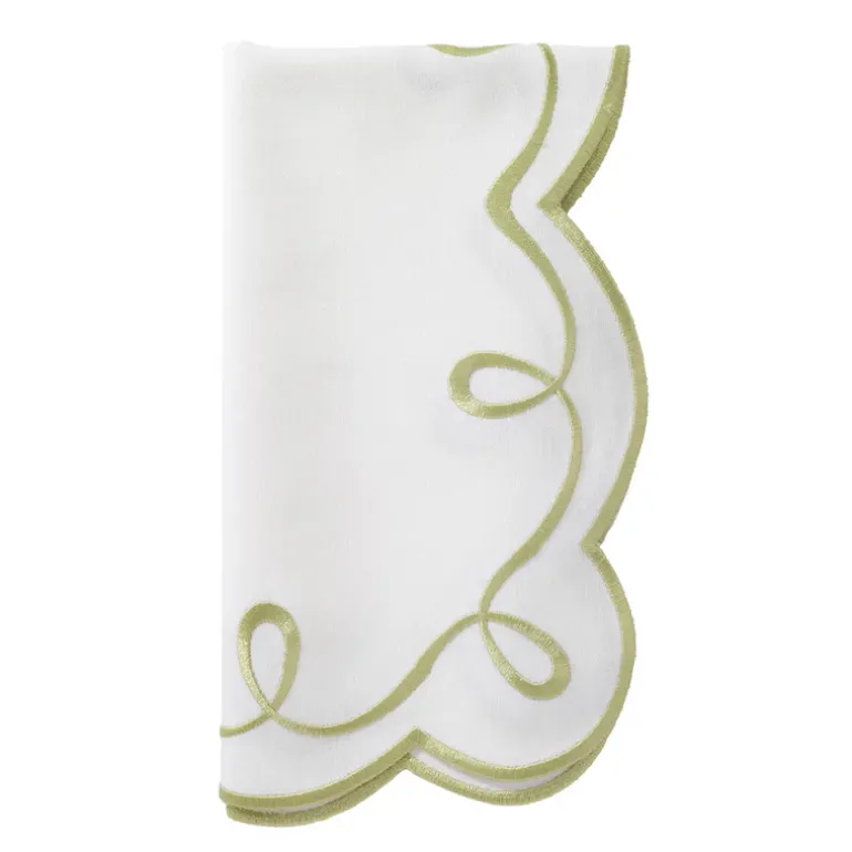 The Ribbon Twirl Napkin Set of 4 Gold is perfect for casual brunches and formal dinner parties alike. These napkins bring a burst of color and individuality to any event. With scalloped edges and striking shades, they enhance your dining experience with a touch of whimsical sophistication.
