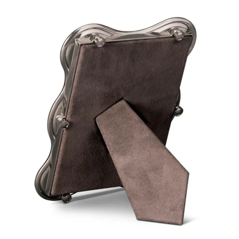 The Ripple Frame in Platinum embodies the modernist spirit of the 1970s with its undulating frame edge. Meticulously crafted by a Portuguese Atelier, the frame boasts L’OBJET’s distinctive leather backing. This sleek and stylish frame is an ideal present or addition to any room in your home.