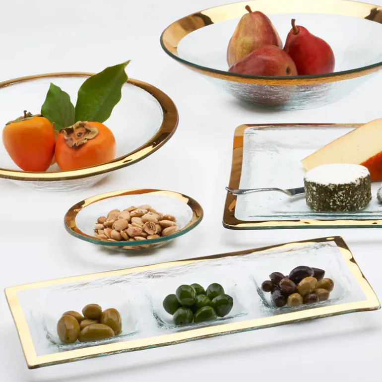 Handmade in California, this glass sectional tray is not just elegant with its hand-painted 24 kt gold or genuine platinum rim, it is also surprisingly durable and dishwasher safe, making it the perfect accompaniment to all occasions.