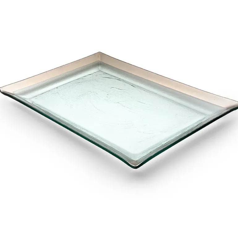 Style your party with the glam Roman Antique Martini Tray, a handmade clear glass serving tray hand-painted with a thick band of 24k gold or genuine platinum. Set out topped with your favorite drinks or even appetizers to add a touch of sophistication to cocktail parties, holiday parties, and birthday parties.