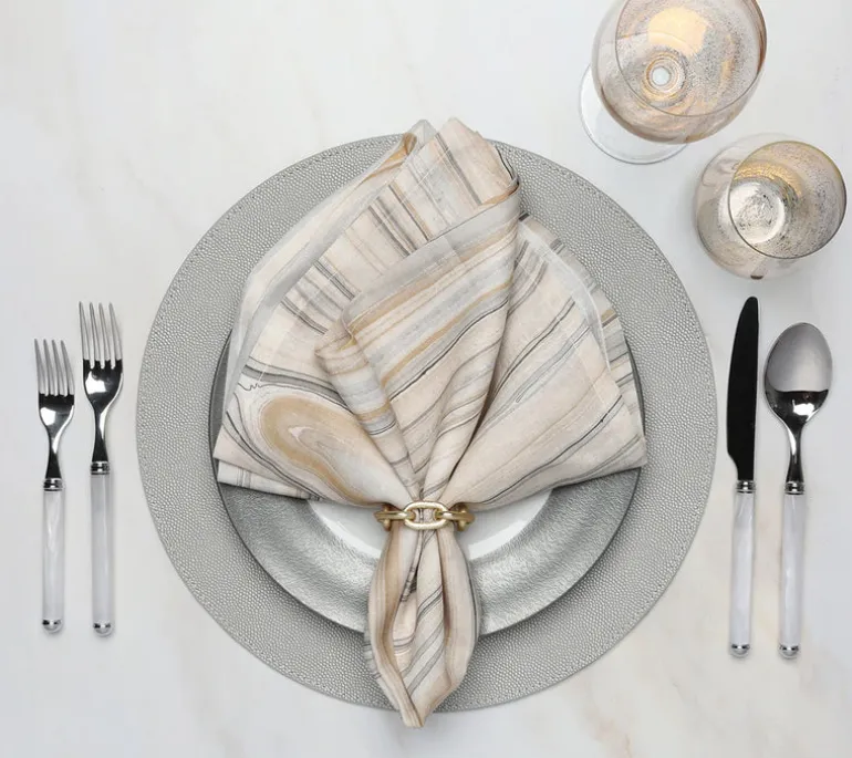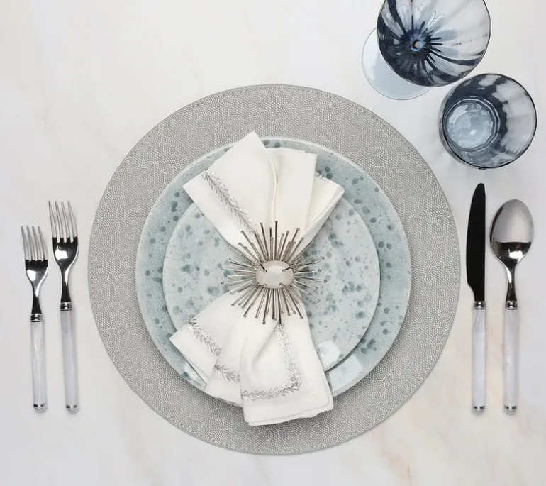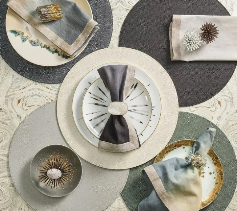 The Shagreen Placemat in elephants features a sophisticated faux granular hide. A beautiful replica of the traditional rough pattern, this placemat is sleek and elegant. The elephant gray color completes this polished look. Perfect for everyday dining or for a lavish dinner party, these placemats are easy to care for; simply wipe down before storing.