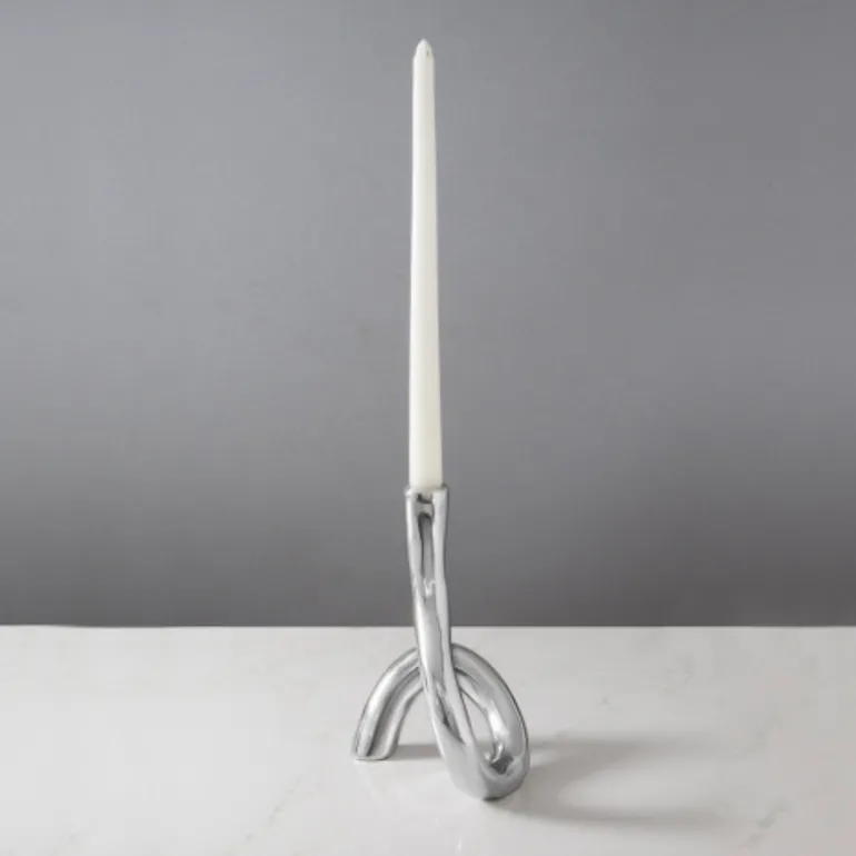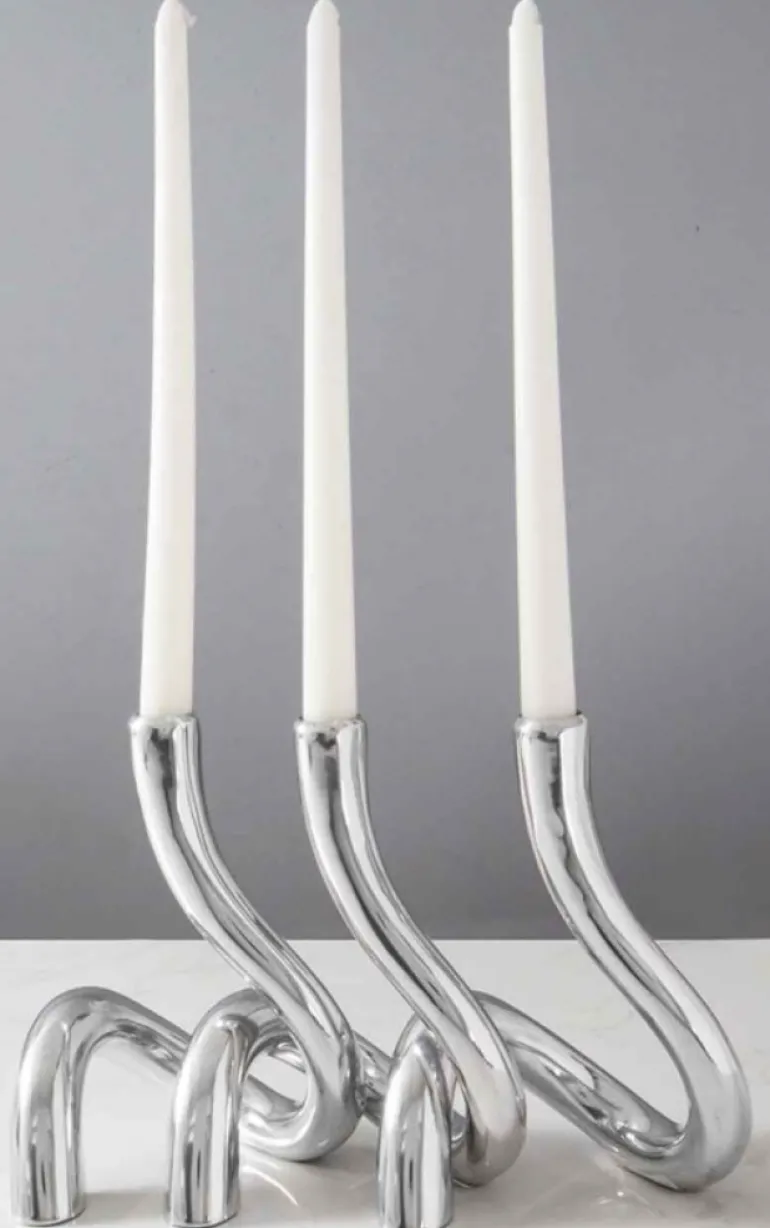 Designed in collaboration with Alvaro Uribe, the tarnish-free Serpente Metal Candle Holder is handcrafted by artisans in Mexico in an innovative, modern sculptural twist form for a unique home decor accent. A great gift idea.