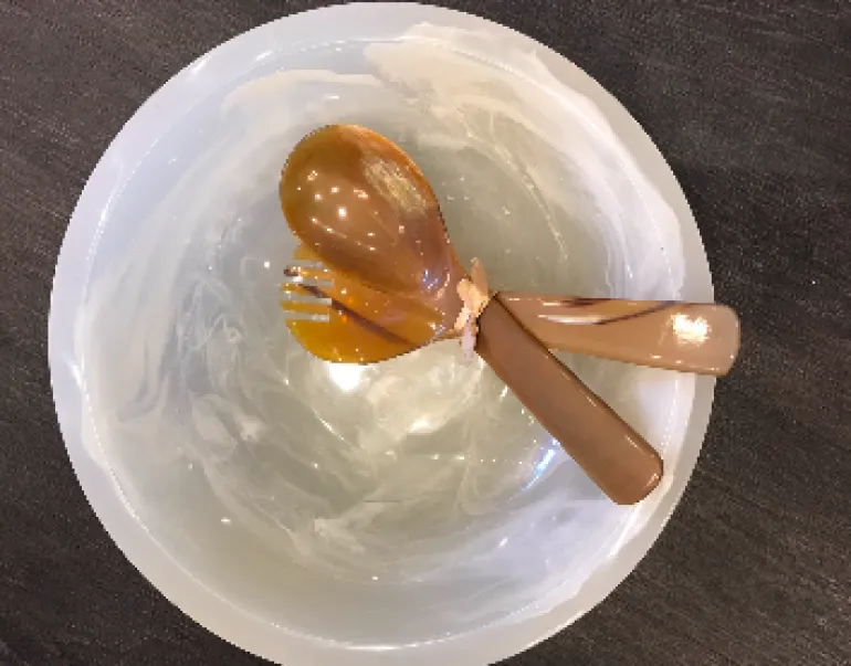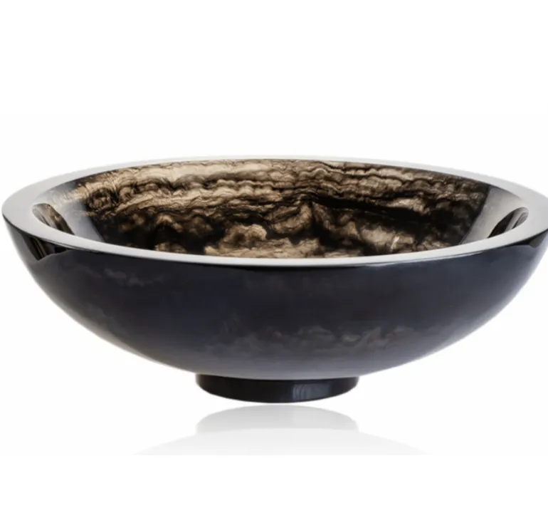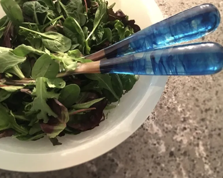 These large, food-safe, serving bowls are made of high quality resin and have a translucent feeling that allows the light to come through, highlighting the movement of colors. Excellent for salads, or as decor on a table or island.