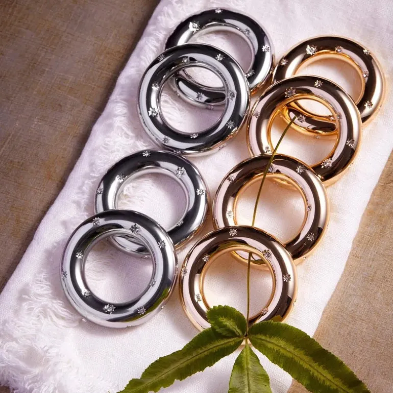 Illuminate your table with shimmering accents from the Stars collection. Combining classical elegance with whimsy, L’Objet Napkin Jewels accessorize the dining experience. Meticulously handcrafted, plated with 24K gold and platinum, each delicate design bejeweled with Swarovski crystals. Presented in a luxury gift box.