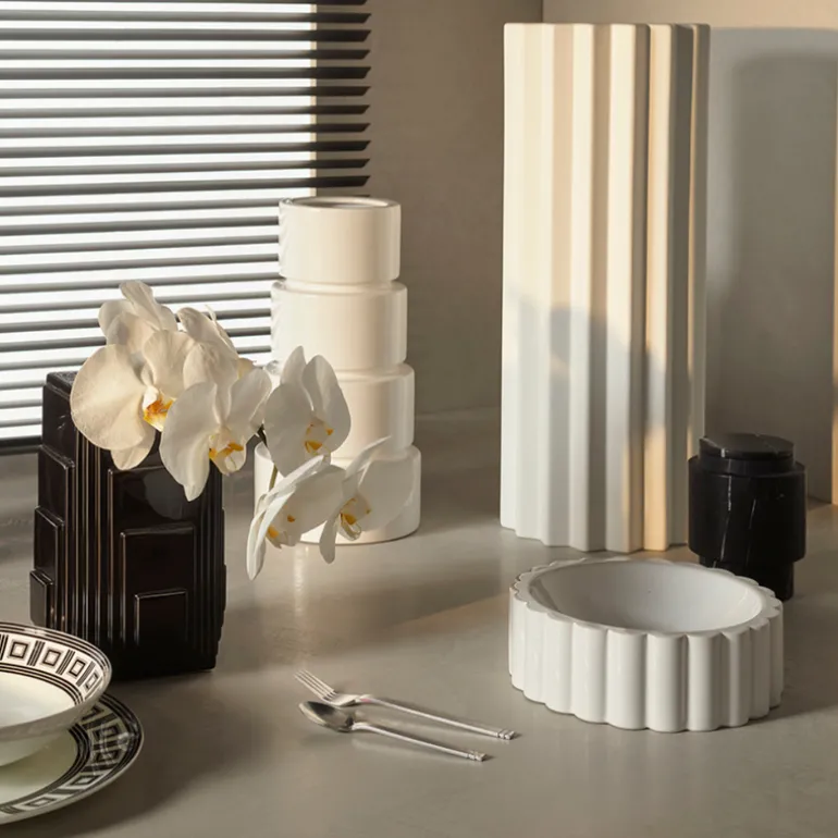 The Sweet Dreams Bowl in white is an attractive piece that features a form that will enhance any interior. Unique fluting brings a dynamic detail to ceramic bowls in dreamy hues and elegant monochromes.