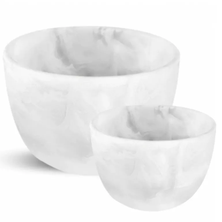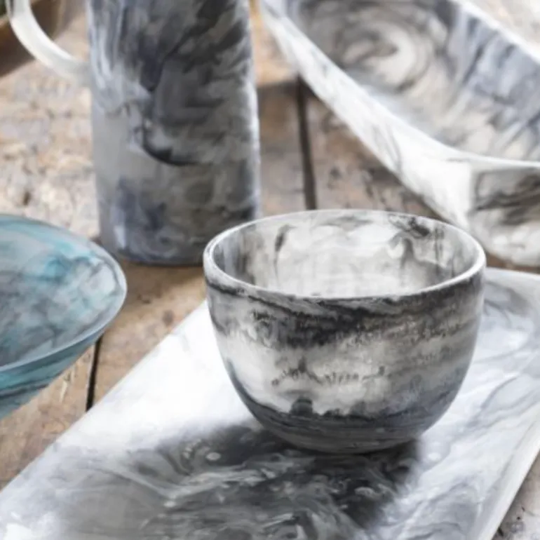 These swirl resin deep bowls are ideal for serving dips, munchies, and small side dishes. It creates the perfect pair when combined with a bigger plate. All pieces are meticulously hand-crafted from smooth resin with straight, uncluttered lines that highlight the hypnotic marbling. durable enough for regular inside or outdoor entertaining.