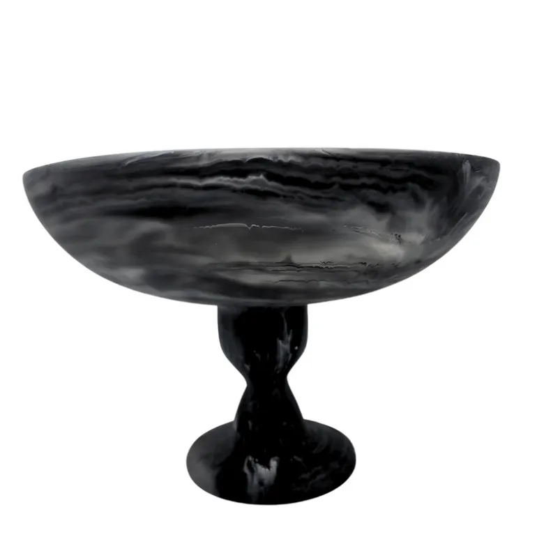 The Swirl Resin Footed Bowl – Black is an eye-catching accent piece. This uniquely styled resin bowl is perfect for serving snacks, with a textured swirl pattern on the sides and a lightweight yet sturdy footing. Its elegant design is sure to make a statement in any home.