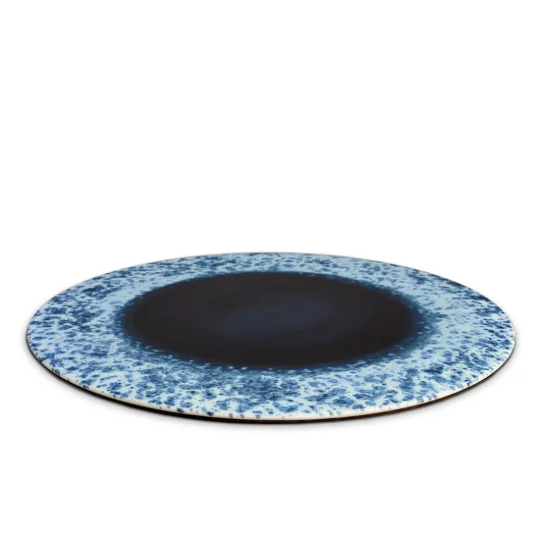 Porcelain placemats with a cork backing adheres to porcelain surface to rest nicely on the table without slipping or scratching. This versatile entertaining accent can be used as a placemat, charger, cheese plate or cake platter.