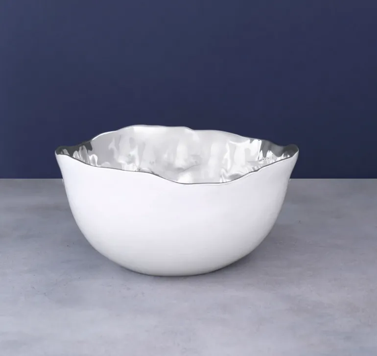 Luxe, lively, and user-friendly–Osaka bowls are presented in white and silver to suit your every serving need. Like the others, our Thanni Osaka Medium Deep Bowl in White and Silver embodies uncomplicated and straightforward design–with unmistakable Beatriz Ball flair.