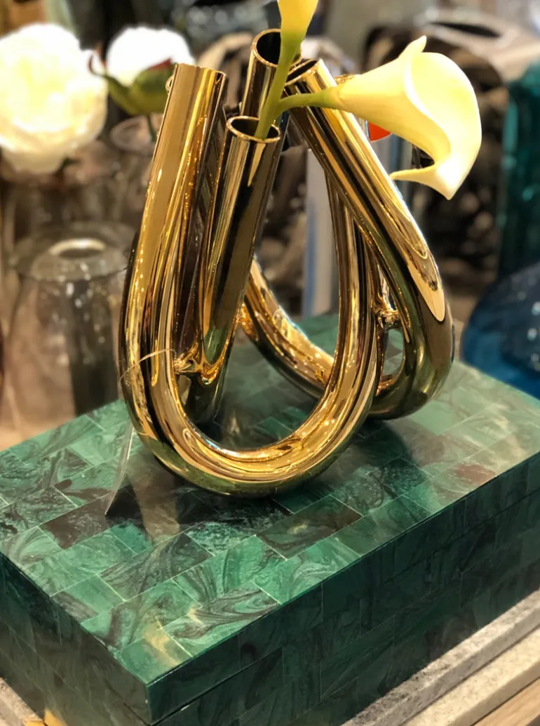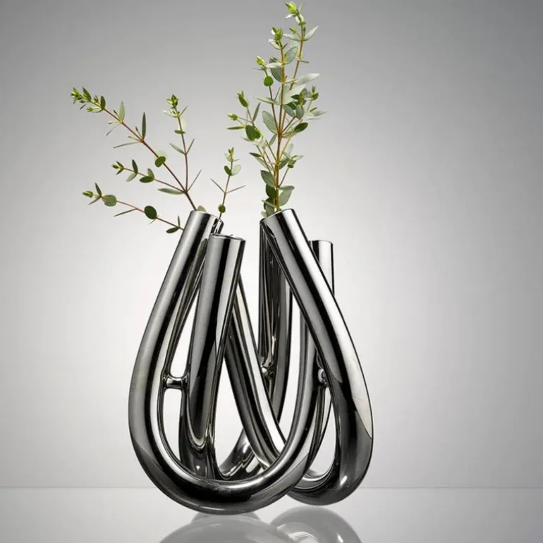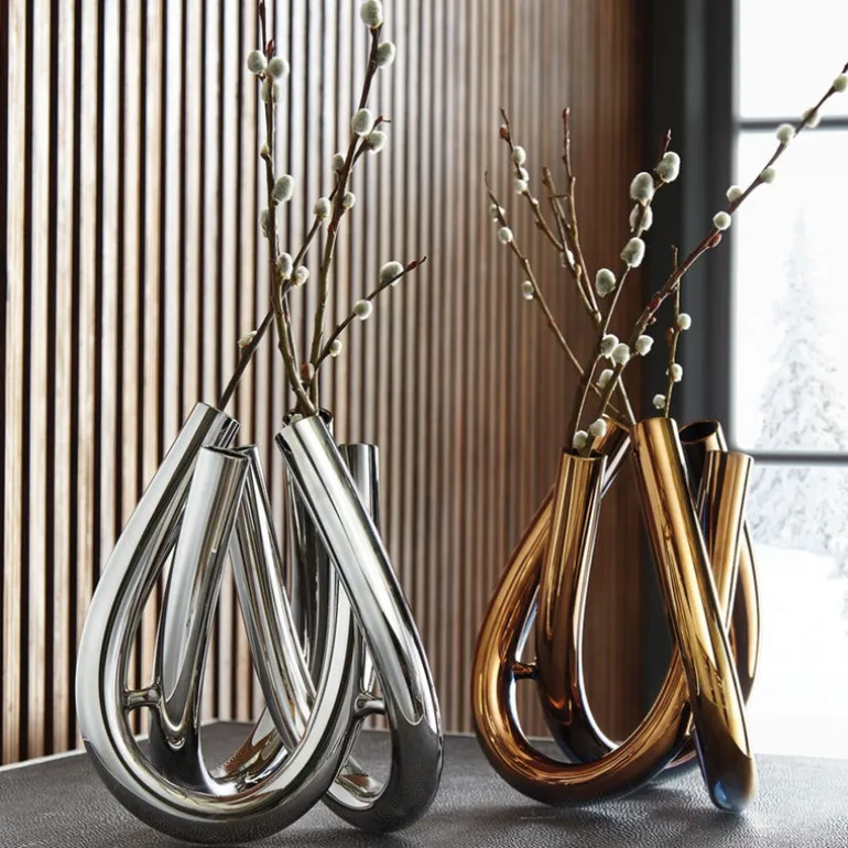 The beautiful elegant vase by Rosenthal is made using the finest glass. Available with a metallic gold or silver PVD coating or clear. Set a pair on a dining table to create a style that is best described as modern and design oriented.