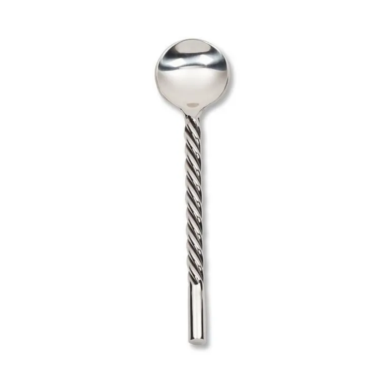 Add a stylish twist to your entertaining with this Twist Handle Small Spoon. Crafted out of stainless steel with a uniquely twisted-design handle, this simple small spoon makes for an elegant complement to any dinner table.