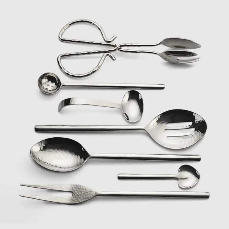 This essential collection of Versa serving pieces by Mary Jurek features a beautifully hammered design and a smooth handle. All pieces are dishwasher safe and are a perfect set for daily use or more formal gatherings
