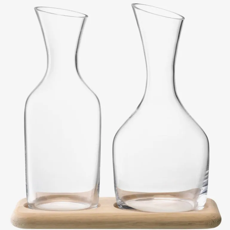 Water & Wine is a set of handmade glass carafes with oak base made by Lsa brand.Water & Wine is an accessory for the modern table and above all functional, thanks to its base in natural wood.