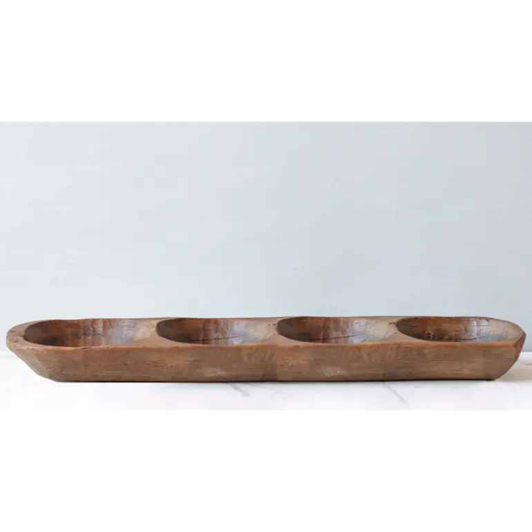Experience the rich history of the Wood 3-Section Serving Bowl – Medium with its one-of-a-kind markings and carvings, adding a distinctive touch to your home. Each tray is one-of-a-kind and may differ in size and appearance due to their natural origins.