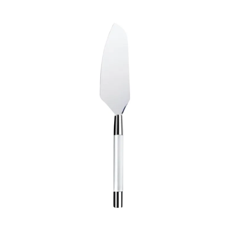 Expertly crafted from sturdy stainless steel, the Zoe Cutting Cake Server boasts a clear acrylic handle and chrome-turned-brass ferrule for added durability. Sleek and confident in its design, this server effortlessly blends style and functionality for the perfect cake-cutting experience.